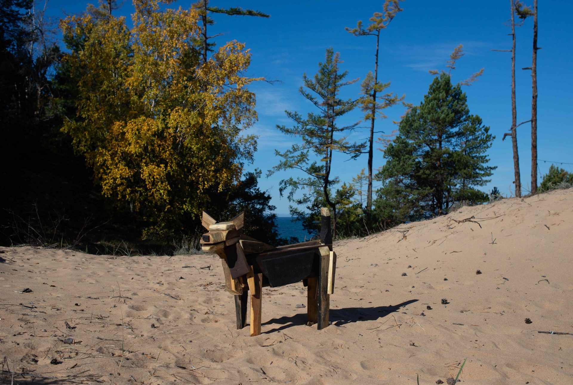 Плотников Егор. Большой мечтатель. 2024, дерево, акрил, 260х70х70
